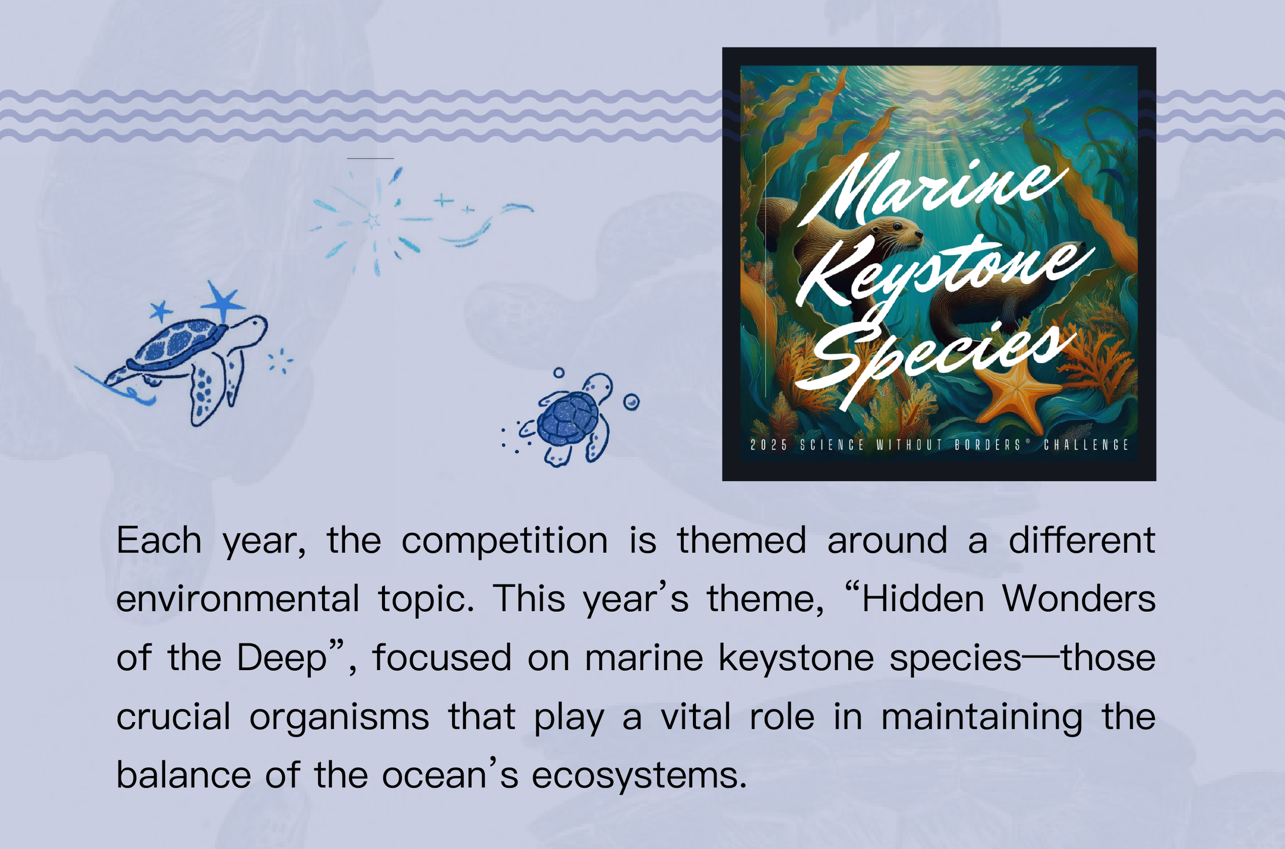 Each year, the competition is themed around a different environmental topic. This year’s theme, “Hidden Wonders of the Deep”, focused on marine keystone species—those crucial organisms that play a vital role in maintaining the balance of the ocean’s ecosystems.